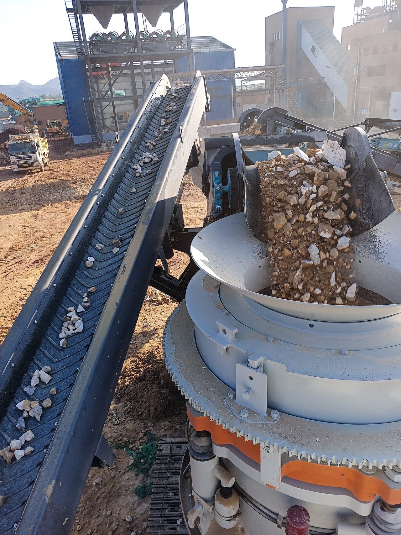 東蒙顎錐篩客戶生產(chǎn)現(xiàn)場,好一派熱火朝天的景象